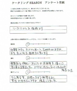 東京最安値のケータリングSEASONトップ » ボリュームプラン10品を注文しましたが、全体の色のバランスが良くて食欲をそそりました » 三栄食品:河内様スキャン①