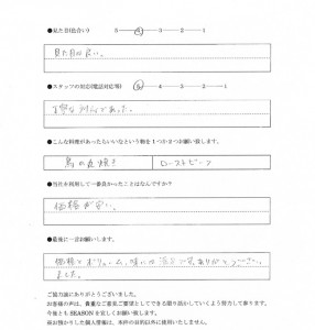 東京最安値のケータリングSEASONトップ » 他の会社と比較しても十分に安かったです。価格とボリューム、味には満足です » アンケート平本真紀様2